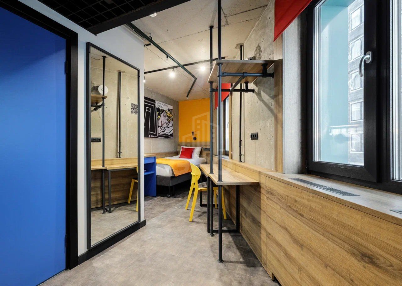 На территории: фитнес зал, коворкинг для работы и учебы, бар и ресторан, кинотеатр, игровая зона с PlayStation. Круглосуточный ресепшен и охрана, пространство для мероприятий на 1 этаже.