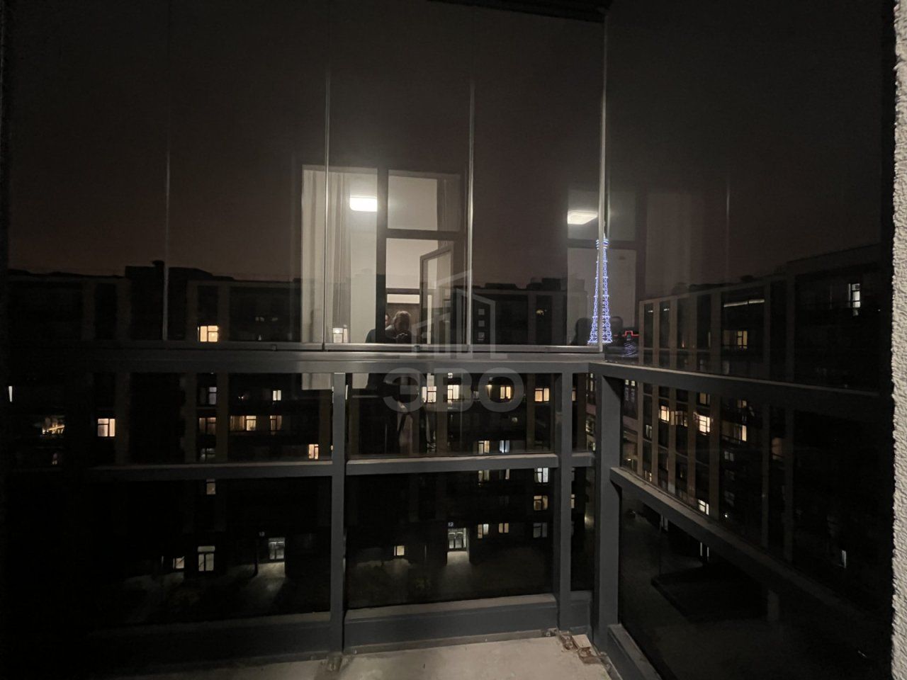 Просторная лоджия с панорамным остеклением, вид на красивый и ухоженный двор.