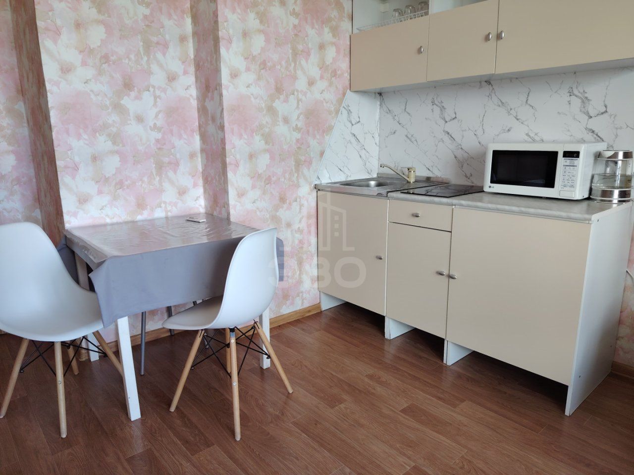 - Кухня оборудована всем необходимым (чайник, микроволновка, индукционная двухкомфорочная плита).