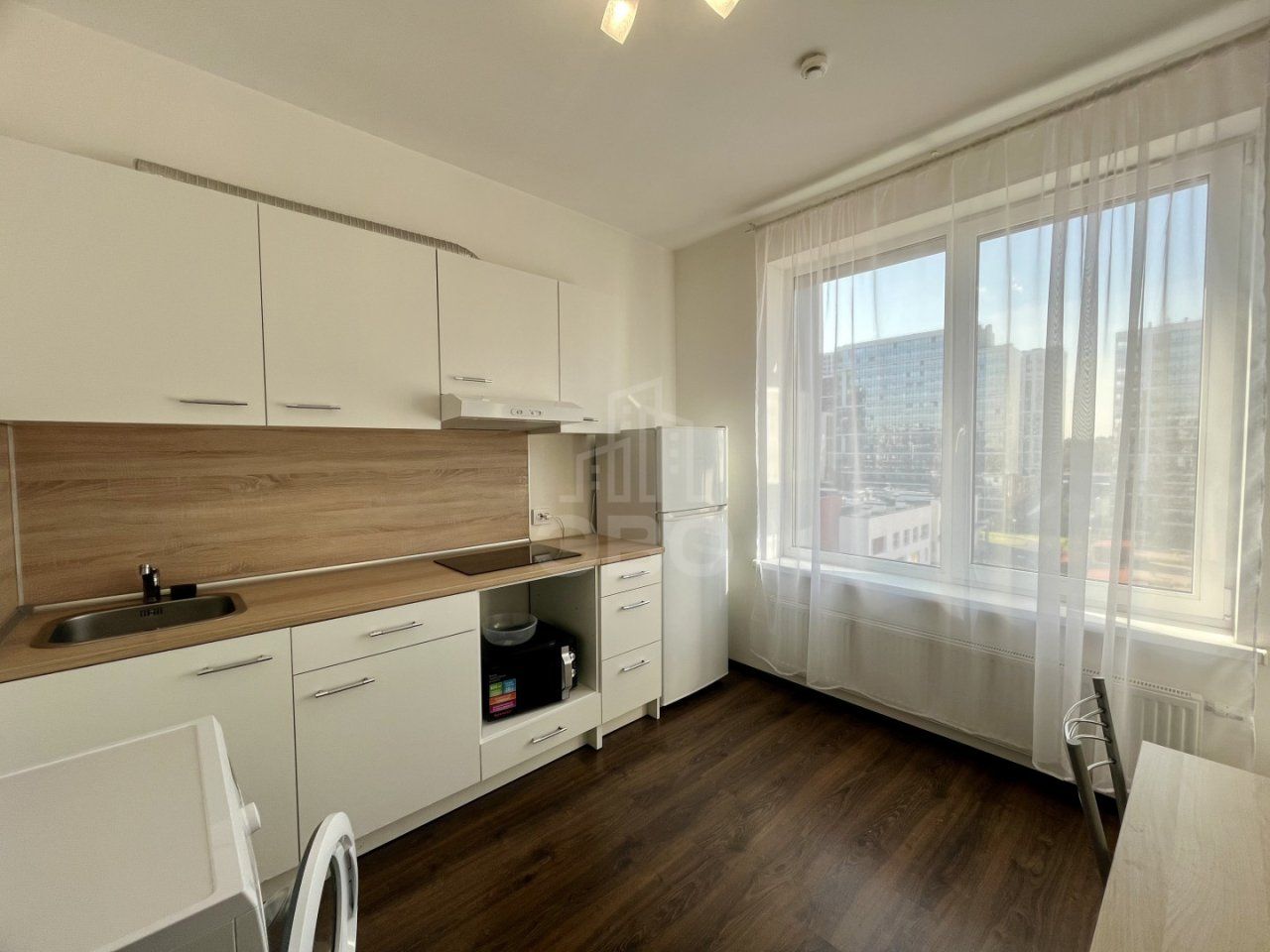 Квартира светлая, после ремонта, на полу ламинат, санузел в кафеле с системой теплый пол. Большая лоджия. Вид из окна во двор. Хорошее расположение дома - метро "Ломоносовская" - 5 минут пешком (760 метров), через дорогу парк им. "Бабушкина", в пешей доступности "Лента", другие магазины.