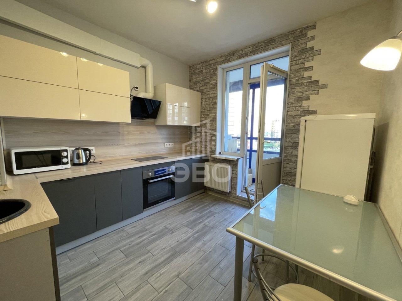 В квартире есть все необходимое для комфортного проживания: раскладной диван, места для хранения, стиральная и посудомоечная машины, холодильник, оборудованный кухонный гарнитур, в прихожей небольшая гардеробная. Санузел совмещенный, окна выходят во двор.