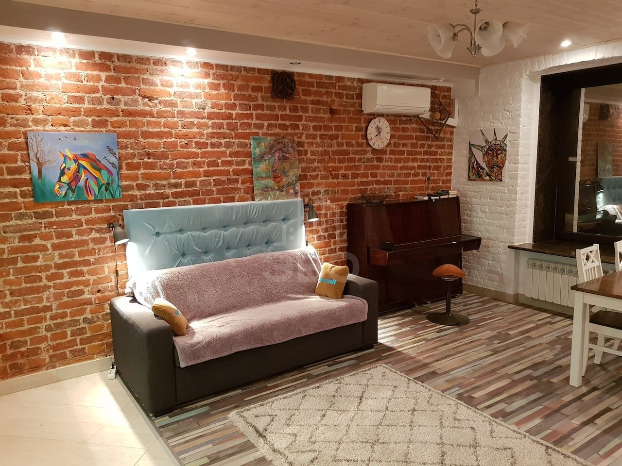 Уютная, стильная квартира-студия в центре города идеально подходит как для одиночек, так и для пар с ребенком. В комнате есть 2 дивана, оба раскладывающиеся. В квартире есть мебель, телевизор, стиральная машина, холодильник, интернет.