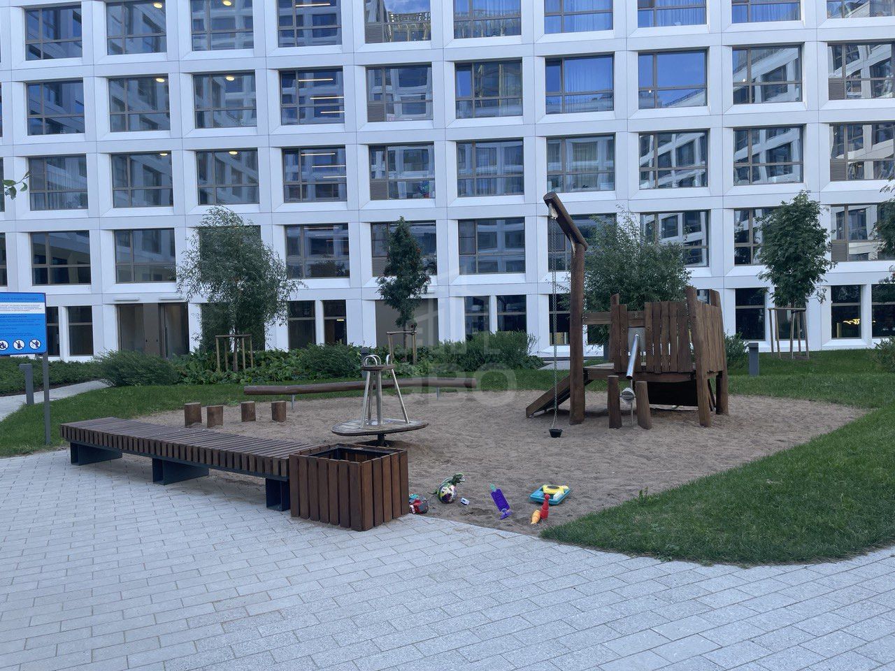 Дом находится в отличном состоянии, оборудован пассажирским и грузовым лифтами, пандусом и мусоропроводом. Отдельного внимания заслуживает современный двор с детскими и спортивными площадками, а также зонами отдыха. Есть подземная парковка, что избавляет от проблем с поиском места для автомобиля. Вблизи дома расположены школы и магазины, что делает проживание здесь ещё более удобным.