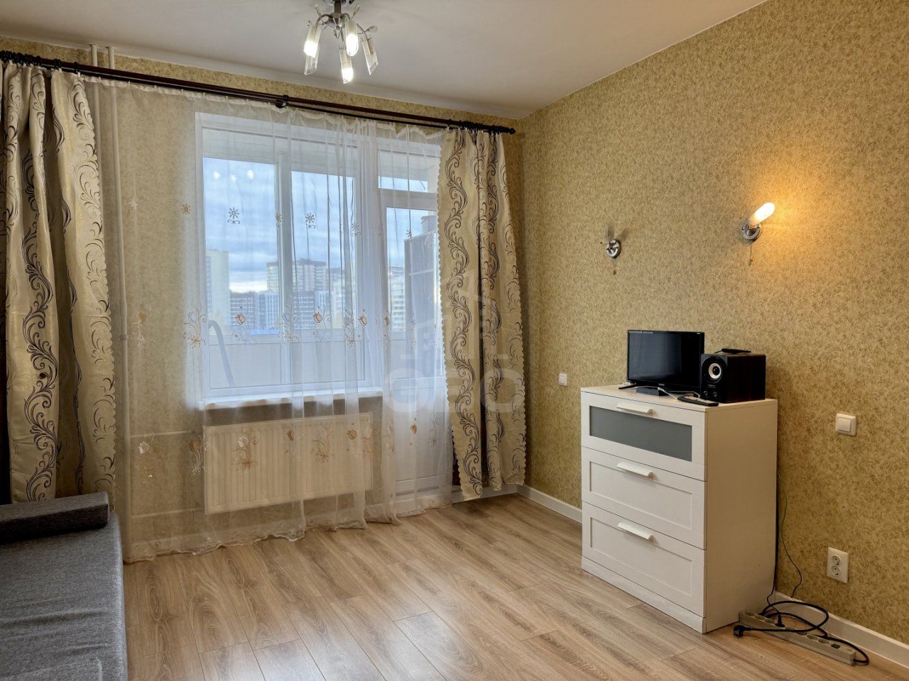 - Гостиная с ТВ-зоной, письменным столом, комодом и раскладным диваном