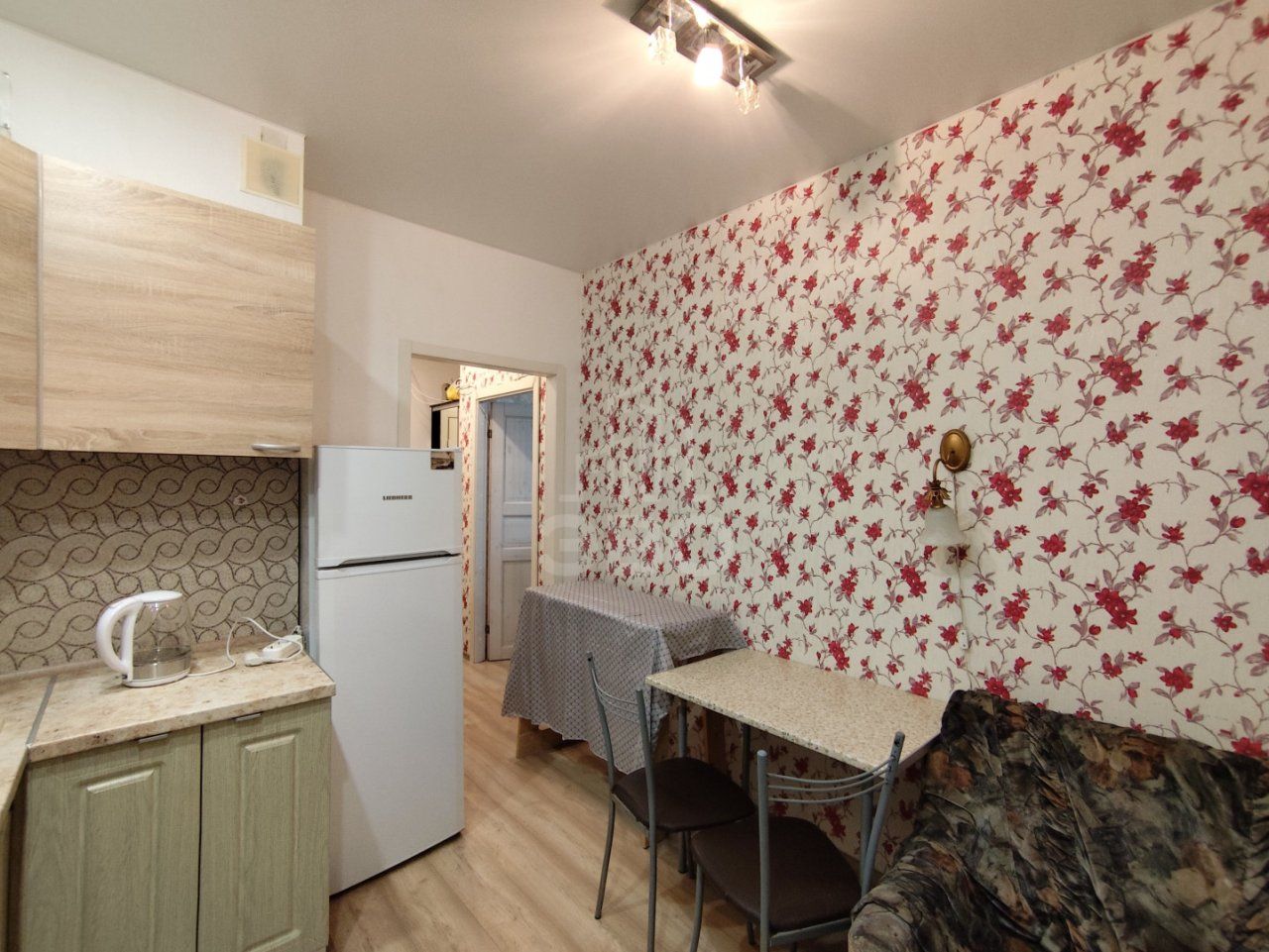 Квартира очень тёплая, светлая и в хорошем состоянии. Кухня полностью оборудована: удобный гарнитур, обеденная зона, холодильник, варочная поверхность, отличная духовка, микроволновка и чайник. Есть приятный уголок для отдыха — большое мягкое кресло, в котором комфортно читать или работать за ноутбуком.