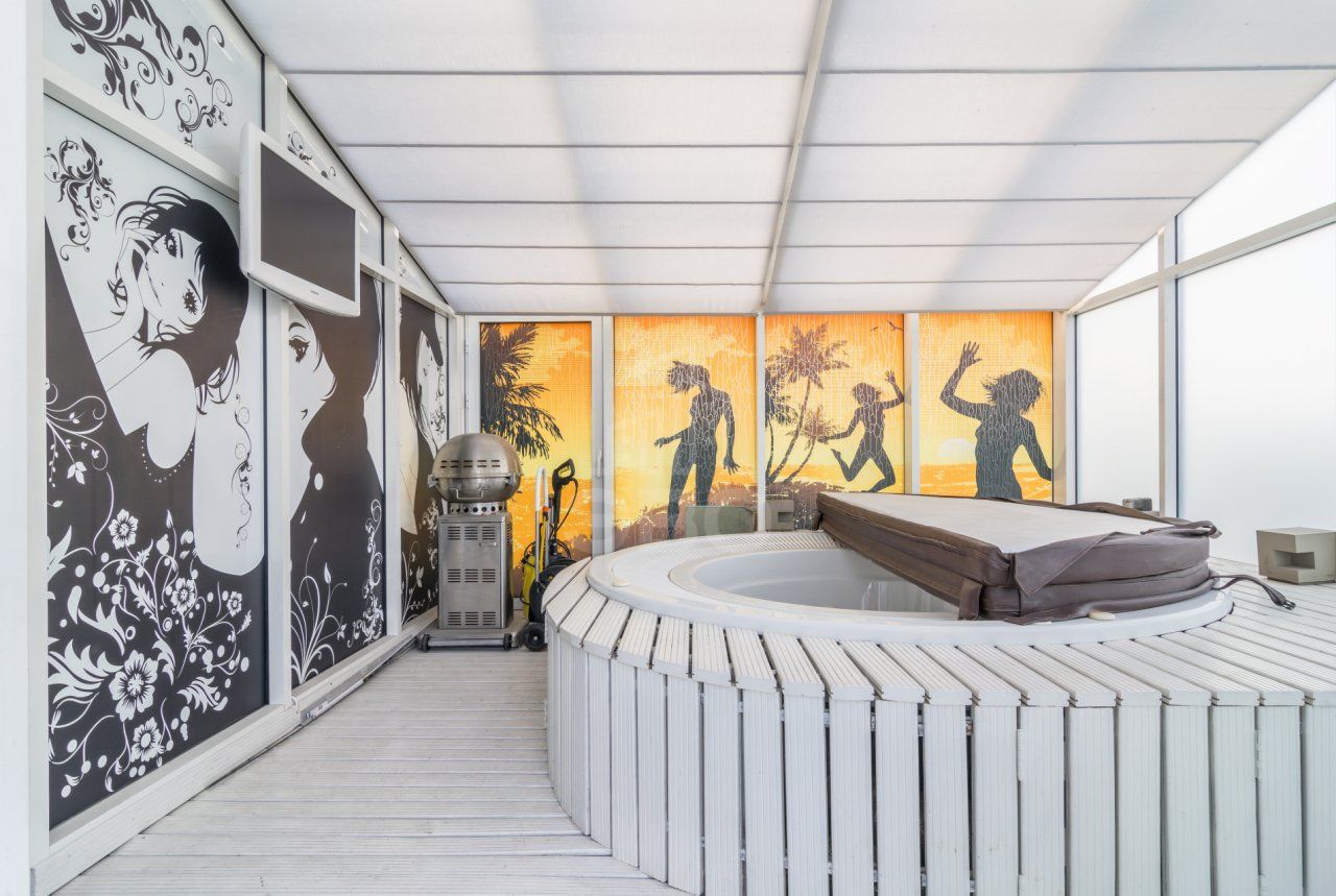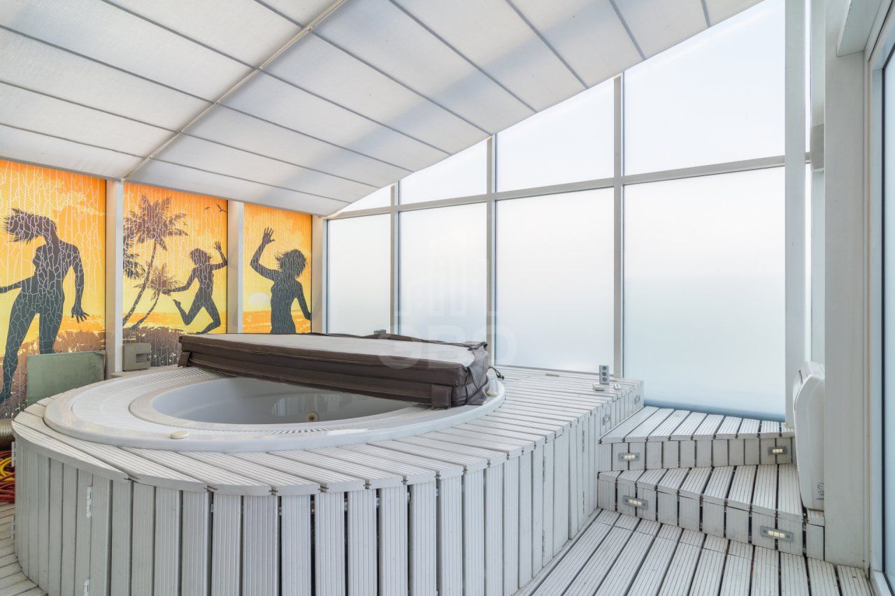 Квартира располагается на последнем этаже 7 этажного дома. Просторная кухня-гостиная 32 кв.м., спальня 18 кв.м. , кабинет 15 кв.м., гардеробная, хозблок, отдельная зона отдыха с профессиональным видео-аудио оборудованием. Кондиционеры, теплые полы. Большая терраса. Панорамное остекление с видом на Неву. 2 санузла. Просторная ванная комната с окном. Отдельно на территории террасы установлено джакузи.