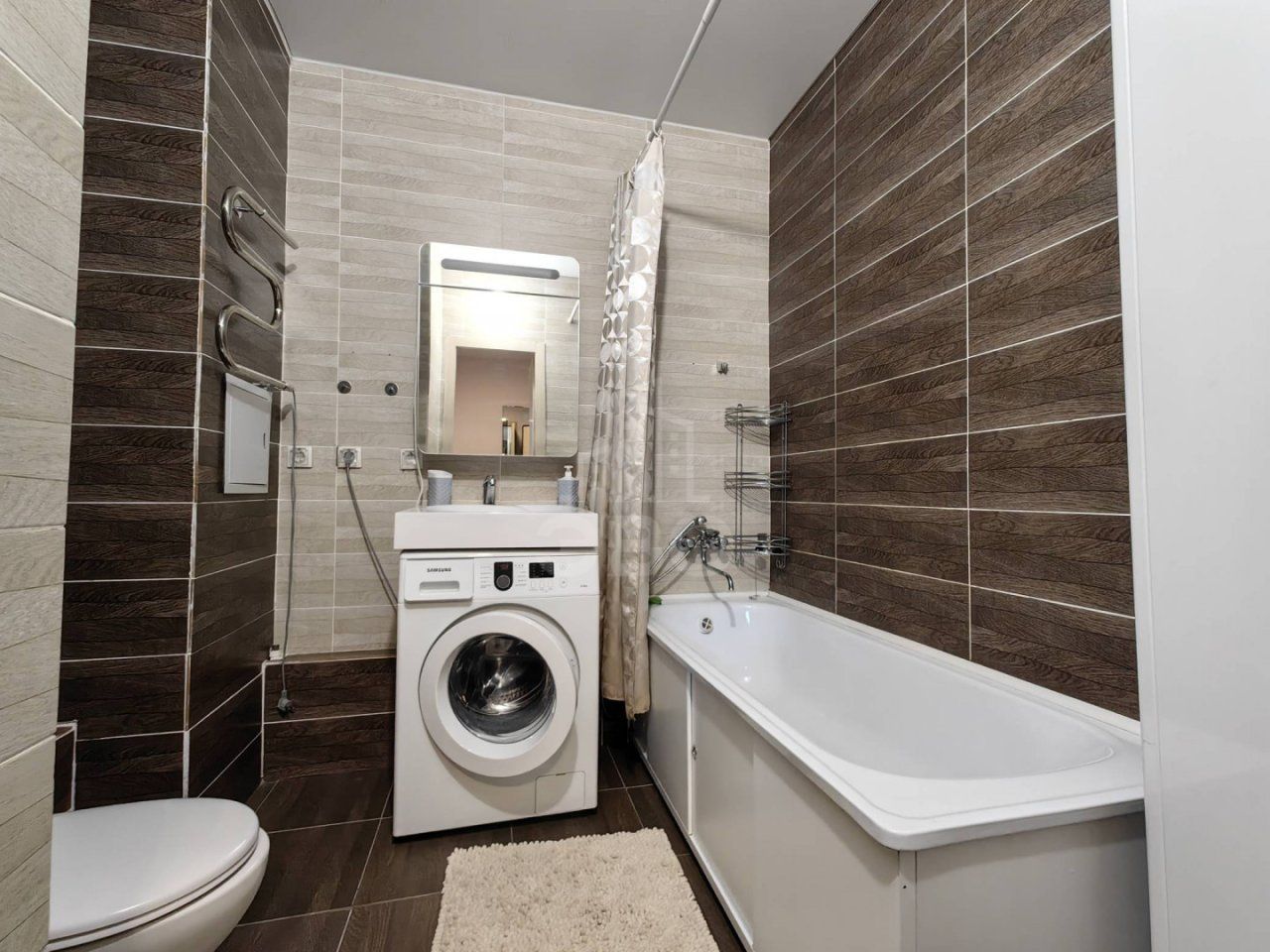 есть вся необходимая и качественная техника: холодильник, посудомоечная машина, духовой шкаф, микроволновая печь, варочная панель, чайник, вытяжка, стиральная машина, телевизор