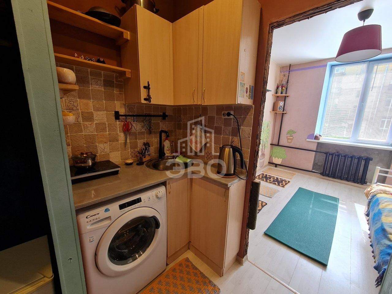 В квартире выполнен хороший ремонт. Квартира очень уютная и теплая. Окна выходят в зеленый двор. Также в квартире есть все удобства для комфортного проживания, встроенная кухня, отдельный сан.узел (душевая кабина и унитаз), холодильник, стиральная машина, раковина.