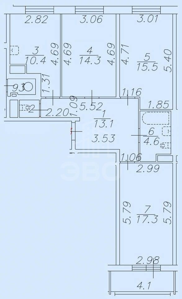 трехкомнатная квартира в Санкт-Петербурге по адресу: Героев проспект, 25, к 1