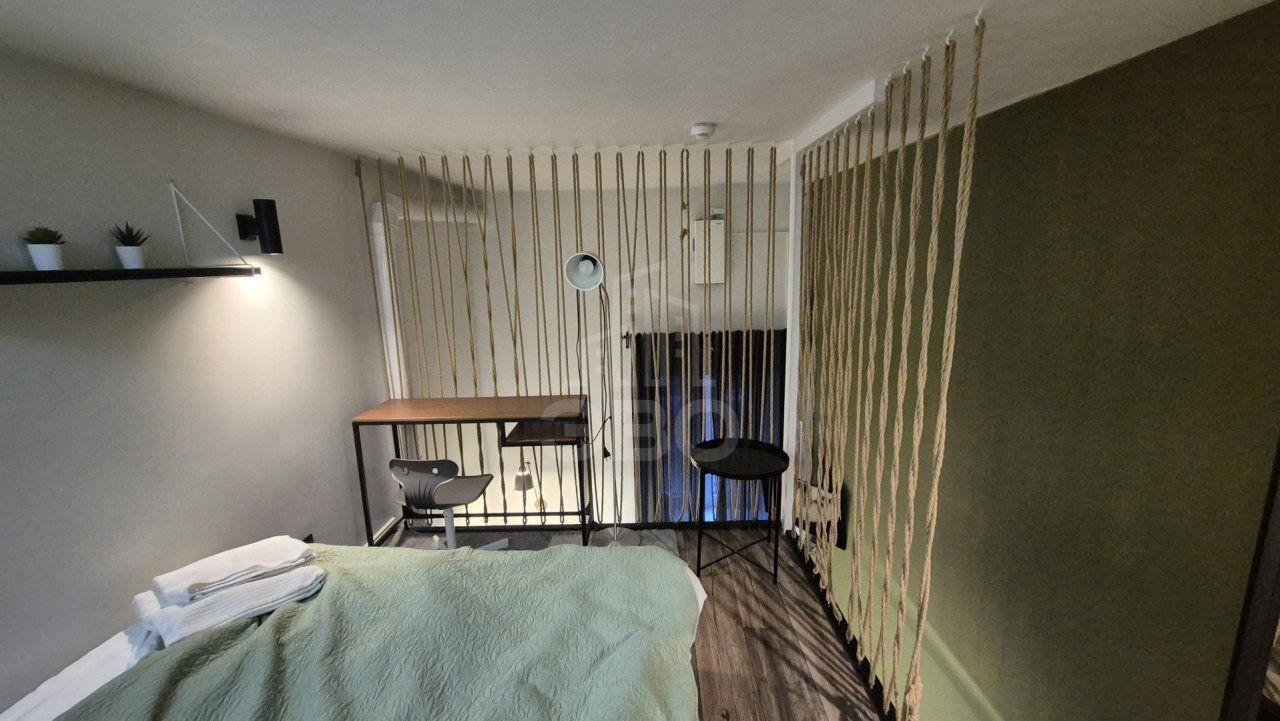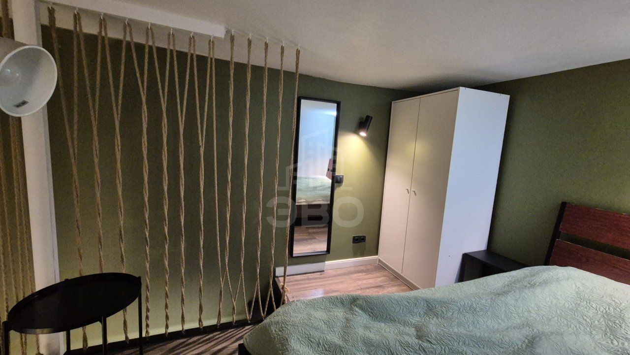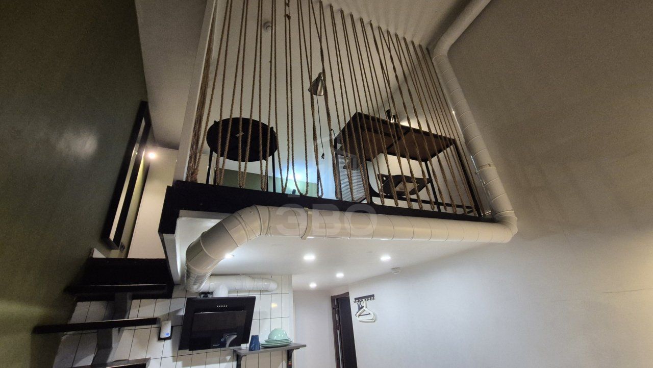 Квартира расположена на 1 этаже и имеет отдельный вход. Высота потолков 4 метра, благодаря чему в студии сделан полноценный второй ярус. Выполнен качественный ремонт. В квартире 5 кВт электричества.