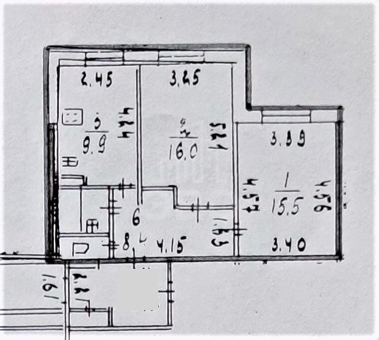 Окна выходят на юго-восточную сторону и зеленый двор. Комнаты и кухня просторные, их можно оборудовать по своему вкусу, высота потолков 2,65 м.