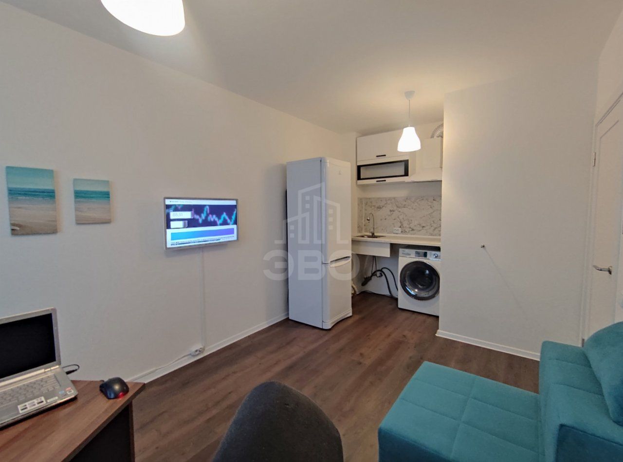 Есть удобная двуспальная кровать, вместительный шкаф в комнате. На кухне установлен компьютерный стол, кресло-кровать бирюзового цвета, телевизор LG со smartTV, холодильник Indesit, стиральная машина Haier, мощная купольная вытяжка Weissgauff. Все в идеальном состоянии и переходит новому владельцу вместе с правом собственности.