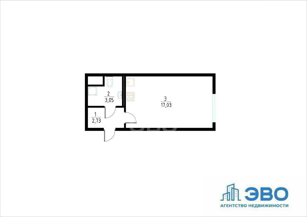 Общая площадь комнаты- 12 м.кв.; кухня- 5м.кв; коридор- 2.73 м.кв.; с/узел -3.05 м.кв.
