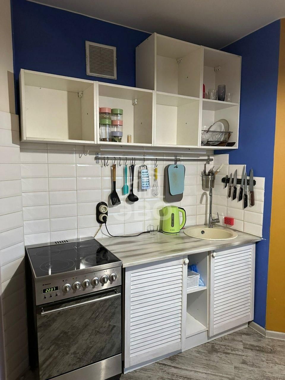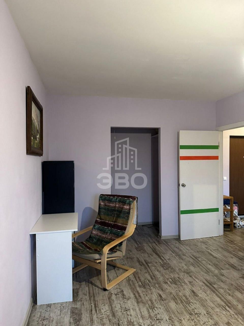 Выполнен косметический ремонт: стены выровнены и покрашены, на полу ламинат, натяжной потолок. Не требует вложений - заезжай и живи.